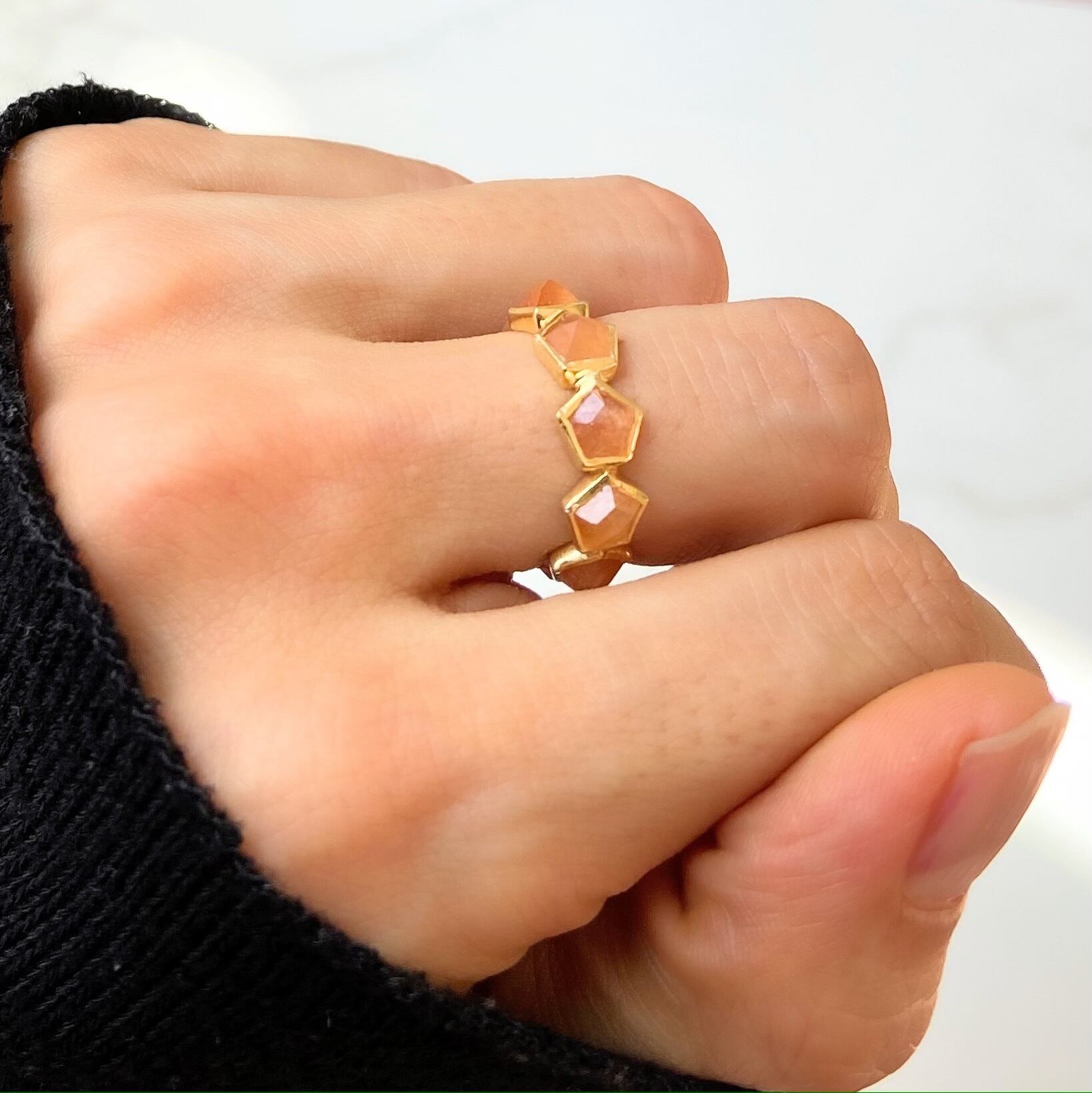 ストーンの輝きと存在感を際立たせるよう、五角形にカット、そして美しいポインテッドファセットを施してもらいました。ボリューミーなので、指を華奢にみてせくれます。