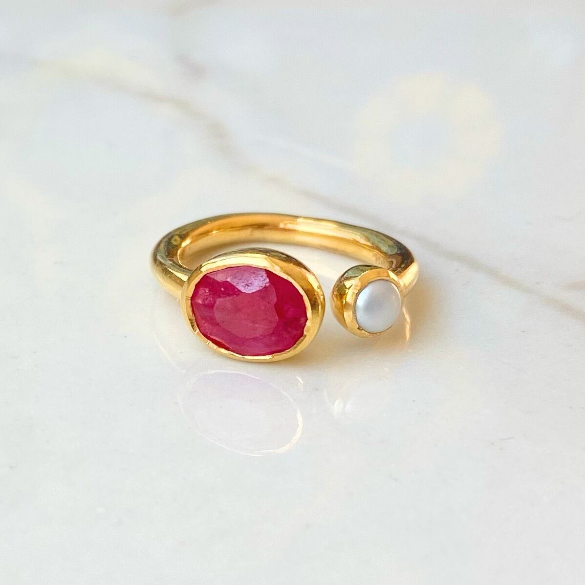 silver925 18kgp オープンリング〈ルビー、パール〉
