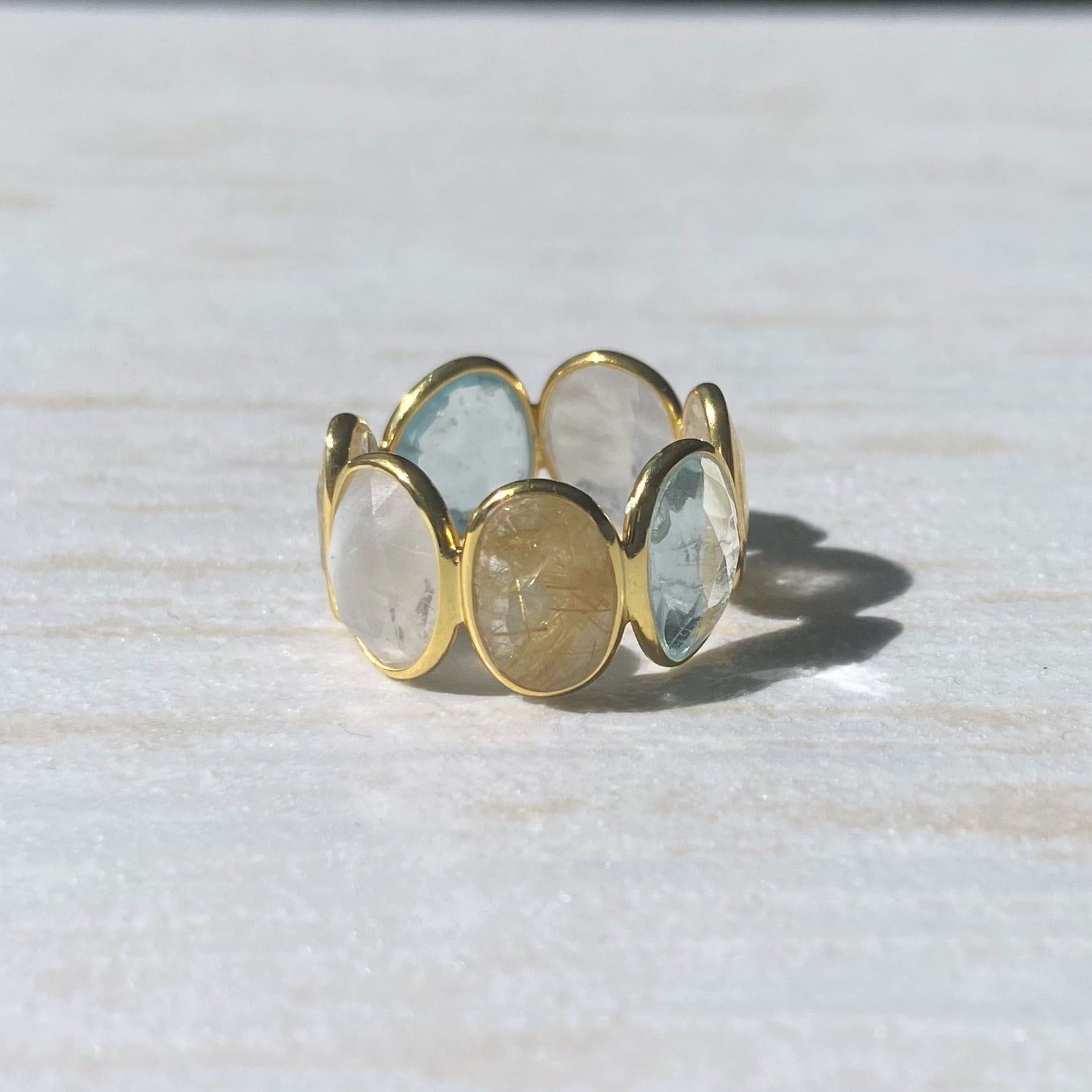 オーバル フルエタニティリング ゴールド3種ストーン〈ゴールデンルチルクォーツ、アクアマリン、レインボームーンストーン〉