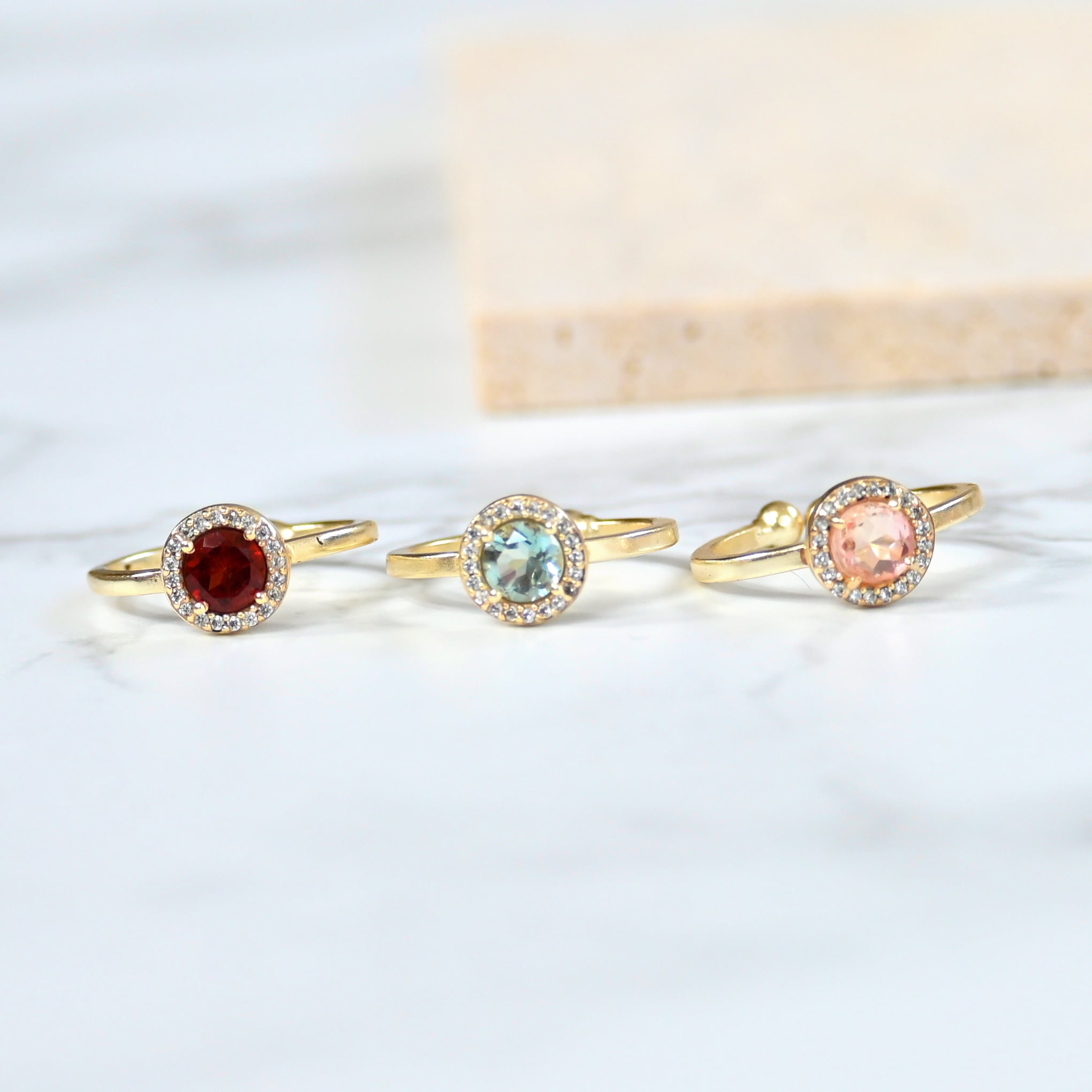 Atelier Mon(アトリエモン)3連オープンリング〈ローズダブレット、ガーネット、ブルートパーズ〉